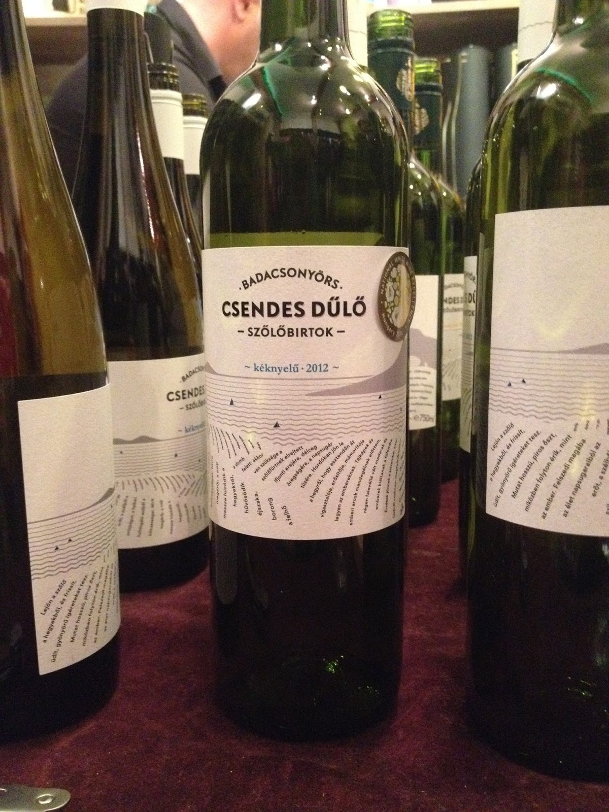 Na sam koniec nadeszła pora na Kéknyelű. To bardzo ciekawy szczep, wymagający dużej uwagi, w okolicach Balatonu był obecny przez stulecia. Dawniej powstawało z niego wino dla zamożnych, za czasów realnego socjalizmu niemalże wyginęło (pozostało ok. 4 ha), od niedawna obserwuje się jego ponowny rozkwit. Rocznik 2014 posiada jasnozłotą barwę, w nosie kwiatowe wyczuwalne nuty owoców egzotycznych, banan, cytrusy. W ustach na pierwszy plan wysuwa się potężna kwasowość, zielone owoce, agrest, mineralność, lekkie, zarazem ma pazura. Piękne. Ocena: ****. Kéknyelű 2013 ma jasnozieloną barwę, w nosie wyczuwalne nuty kwiatowe, cytrusowe, agrest oraz migdały. W ustach złożone, o bardzo łagodnej kwasowości, pojawiają się nuty agrestu, cytrusów, migdałów, dobrze wyczuwalna mineralność oraz solidna goryczka. Bardziej skoncentrowane od swojego poprzednika, acz brak mu jego lekkości. Ocena: ****. Kéknyelű 2012 charakteryzuje się jasnozłotą barwą, w nosie nuty agrestu, trawy, kremowe, wyczuwalne także nuty owoców egzotycznych. W ustach zielone jabłko, agrest, cytrusy, lekkie, przyjemne, solidna kwasowość, choć brak mu głębi tak widocznej w poprzedzających go trunkach. Ocena: ***/****.