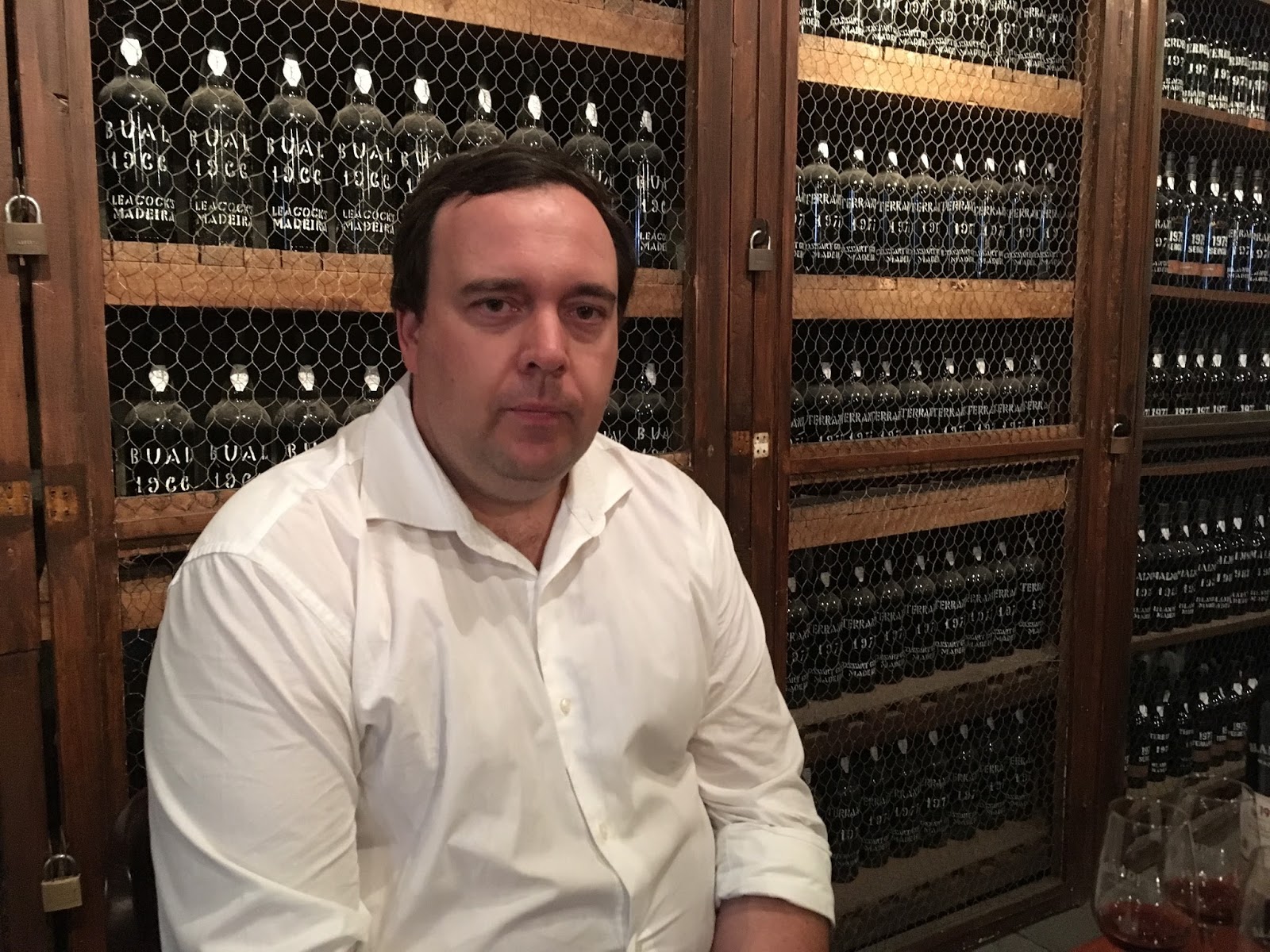 Na sam koniec wycieczki spotkałem się z przedstawicielem handlowym Blandy’s, jak i Madeira Wine Company (której Blandy’s jest największym i dominującym członkiem) – panem João Pedro Ghira, który przygotował dla mnie prywatną degustację i cierpliwie opowiadał o szczegółach produkcji i sprzedaży tutejszego wina. Z racji swojego stanowiska pan Ghira niejednokrotnie wizytował Polskę i dość dobrze orientuje się w polskim rynku winiarskim. Próbowano dystrybuować wino Alvada poprzez sieć drogerii Hebe, ale projekt nie okazał się sukcesem. Zresztą współpraca z całym koncernem Jerónimo Martins nie układa się zbyt pomyślnie, gdyż wymaga on sporych zniżek, nieopłacalnych z punktu widzenia producenta. Widać to w portugalskich ofertach Biedronki – na próżno tam szukać win z Madery.