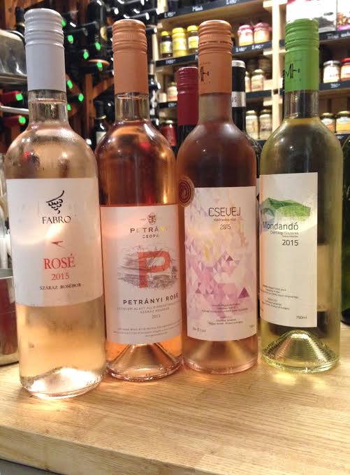 Pierwszym z testowanych win było Mari Bora Sauvignon Blanc 2015 od Fabro Pince z regionu winiarskiego Tolna. Można powiedzieć, że jest to arcytypowy przykład win z tego szczepu – bladozielona barwa, w nosie wyczuwalna trawa, ananas, cytrusy, ale i klasyczne kocie siki, w ustach łagodna, lekka kwasowość, agrest, ananas, nuty pieprzne oraz cytrusy. Lekkie, przyjemne, w sam raz na lato. Ocena: ***. Kolejnym i zarazem ostatnim białym winem było Cserszegi Fűszeres 2015 od Megyeri-Hanti Pince z Monor w regionie winiarskim Kunság. Ma ono bladożółtą barwę, w nosie wyczujemy nuty kwiatowe, brzoskwinię, nieco nut pikantnych. W ustach na pierwszy plan wysuwa się przyjemna kwasowość, potem pojawiają się cytrusy, mango. Bardzo lekkie, owocowe. Finisz z lekką goryczką. W sam raz na lato: ***/****.