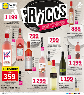 Pojawiły się wina znanych producentów – Nyakas Budai Irsai Olivér 2014 (1199 HUF – 16,50 PLN), czy też Hilltop Pinot Grigio Rosé 2015 (799 HUF – 11 PLN), ale mamy tu również wina z małych winiarni, czy też nawet bio. Dużo jest win z południa Węgier i z okolic Balatonu, nie spodziewajcie się żadnego tokajskiego. Jeśli chodzi o szczepy, mamy sporo Kékfrankosów – pięć, co doskonale oddaje rosnące zainteresowanie tym szczepem. Nie ma tu jakichś świetnych strzałów, są i przemysłowe zlewki (lidlowy Kunsági Kékfrankos), ogólnie jest to przyzwoita oferta, zwłaszcza w swoim przedziale cenowym. Cieszy duża ilość win różowych. Jeśli będziecie przejazdem lub na wakacjach na Węgrzech śmiało uderzajcie do tutejszego Lidla, by poznać smak odświeżających szprycerów i nie tylko – podano nawet kompozycje najpopularniejszych mieszanek. Oferta ważna w dniach 27-29 czerwca 2016, lub do wyczerpania zapasów. Całość oferty znajdziecie tu.