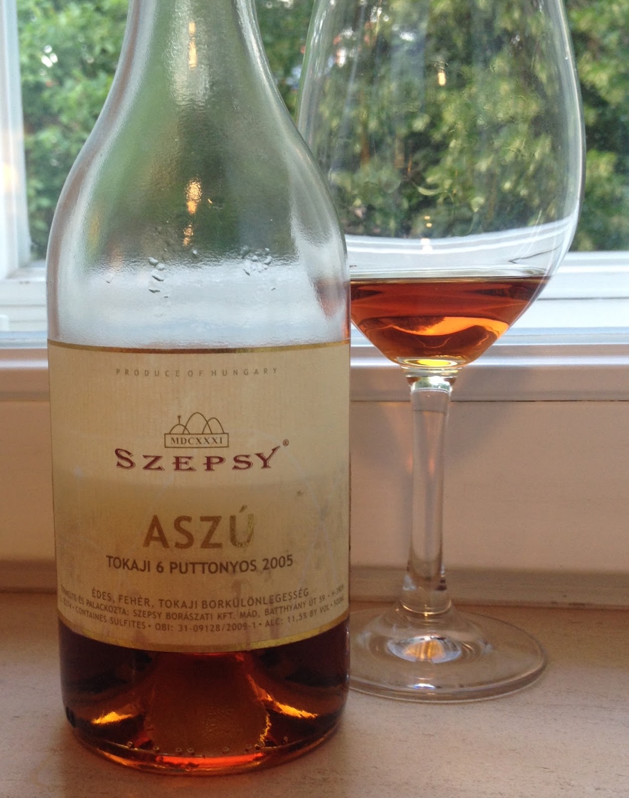 Kulminację wieczoru stanowiły dwa wina. Pierwszego nie trzeba specjalnie przedstawiać – Szepsy 6 puttonyos Aszú 2005 – wino od żywej legendy Istvána Szepsyego. Charakteryzuje je piękna, ciemnobursztynowa barwa, w nosie botrytis, miód, suszone owoce – daktyle, figi. W ustach niesamowita wręcz koncentracja, przy czym zachowana jest równowaga słodyczy (228 g/l cukru resztkowego) oraz kwasowości. Bogate w nuty owocowe – brzoskwinii, pigwy, fig, oleiste, krągłe. Niesamowicie długi i piękny finisz. Jedno z najlepszych win, które miałem przyjemność pić w życiu. Ocena: *****. Po tym wszystkim nadeszła pora na Aszú-Eszencia 2008 od Matyisák-Vízkeleti Pincészet. Posiada ciemnobursztynową barwę, w nosie wyczuwalne dziwne nuty lakieru, botrytisu, suszonych owoców. W ustach pojawiają owoce – brzoskwinia, daktyle – stłamszone nieco tą nutą lakieru. Oleiste, potężna słodycz, którą w ryzach trzyma wyraźna kwasowość. Gdyby nie ta dziwna nuta, to byłoby to fantastyczne wino. A tak, w gronie tak wybitnych butelek jest tylko przeciętne. Ocena: ***.